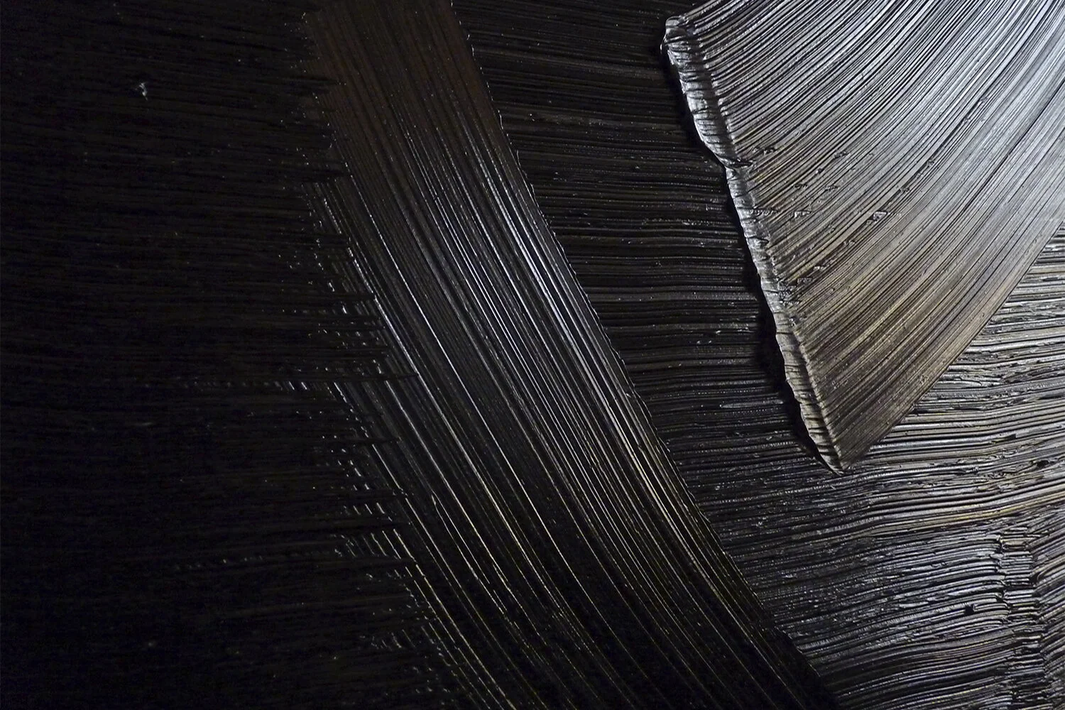Le format a changé des séries précédentes, s’étirant et s’écrasant dans un rapport de 1,5, proche du format original des Chronophotographies de Marey et Muybridge, plaçant cette recherche si fortement ancrée dans le matériau, à mi-chemin entre la perception synesthésique et chronophotographique. Le format a pour fonction de permettre le d’un mouvement sous forme vibratoire et fréquentielle dans un format où la contrainte définit les amplitudes. Ainsi, les fréquences, enveloppent les horizontales comme des valeurs de durée, se libérant de l’aspect purement sonore pour reprendre l’idée des schémas de modulation, de transmission, de réverbération, d’absorption et de silence.